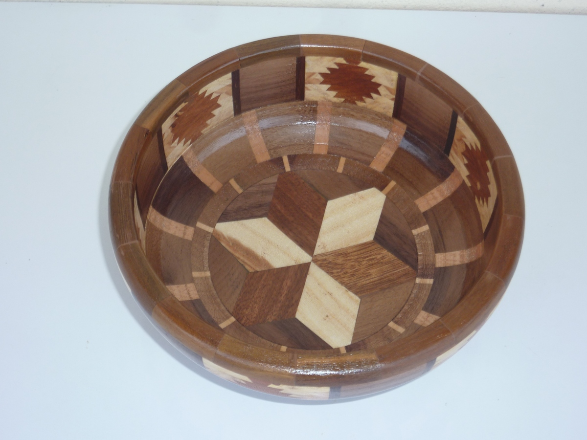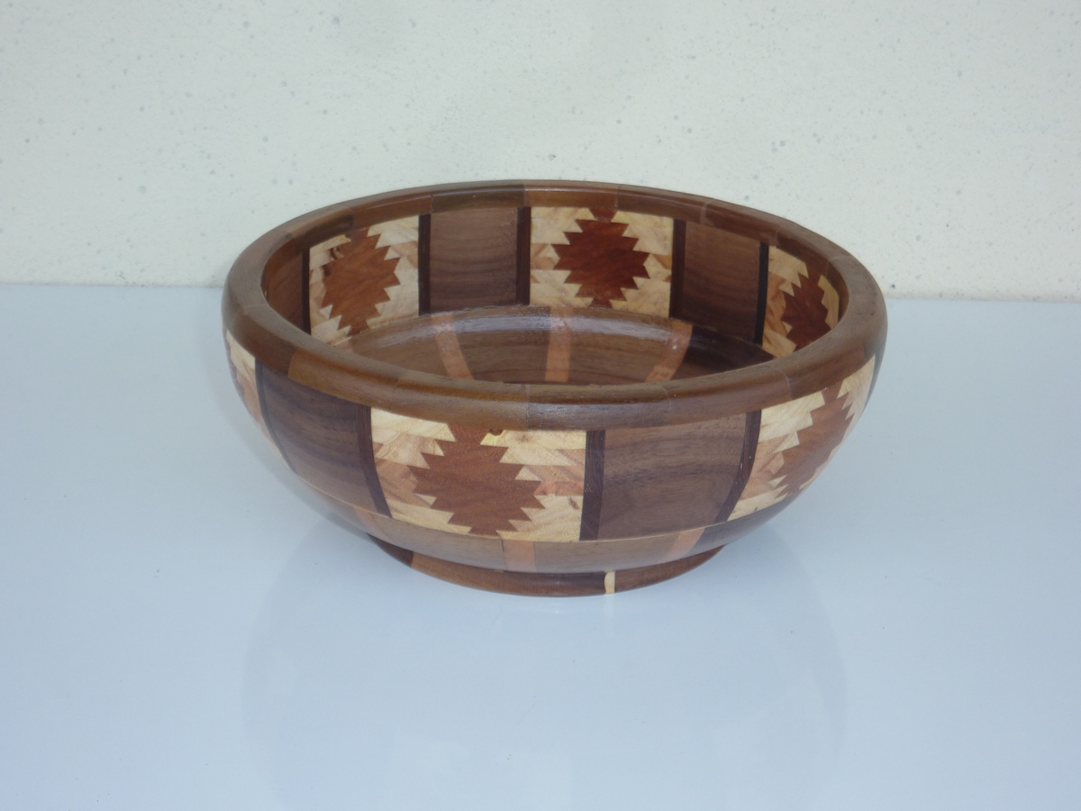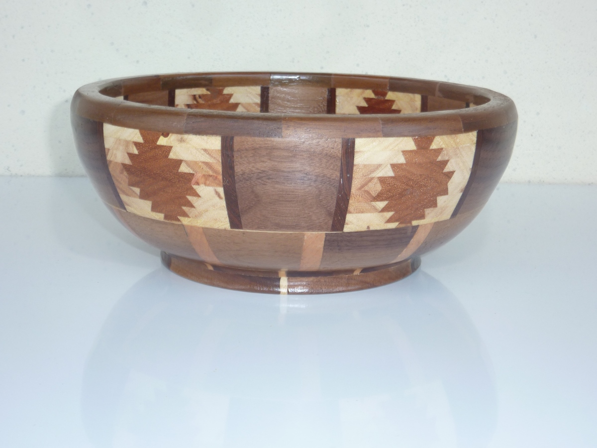 Ciotola formata da segmenti diversi disposti sia nel fondo che nel corpo. verniciata con poliuretanico