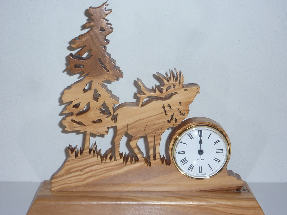Tratto al traforo da una tavola massiccia, con inserito orologio elettronico made in Germany. Finitura in poliuretanico
