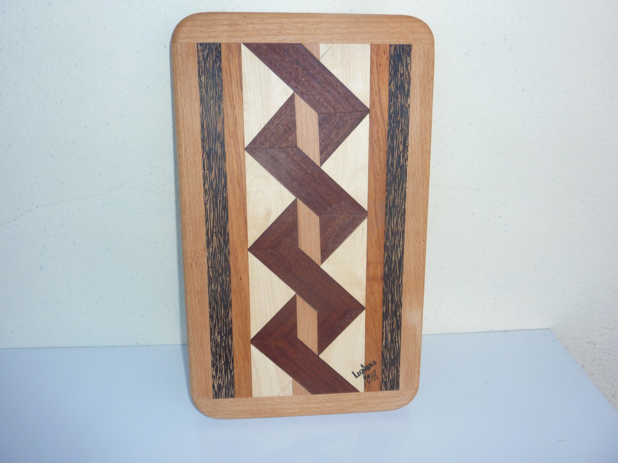 Tagliere con intreccio centrale e vari segmenti composti. Finitura in olio di Tung