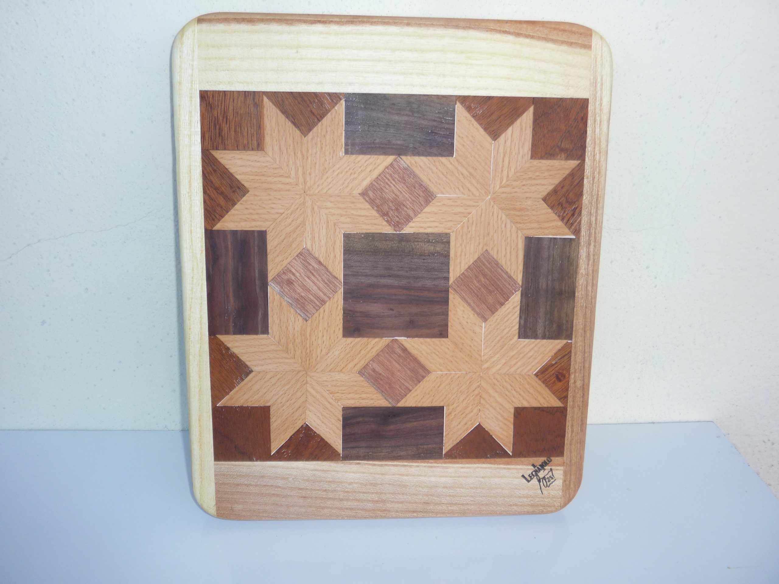 Tagliere di stelle con inserimento di segmenti di altre essenze. Finitura in olio di Tung